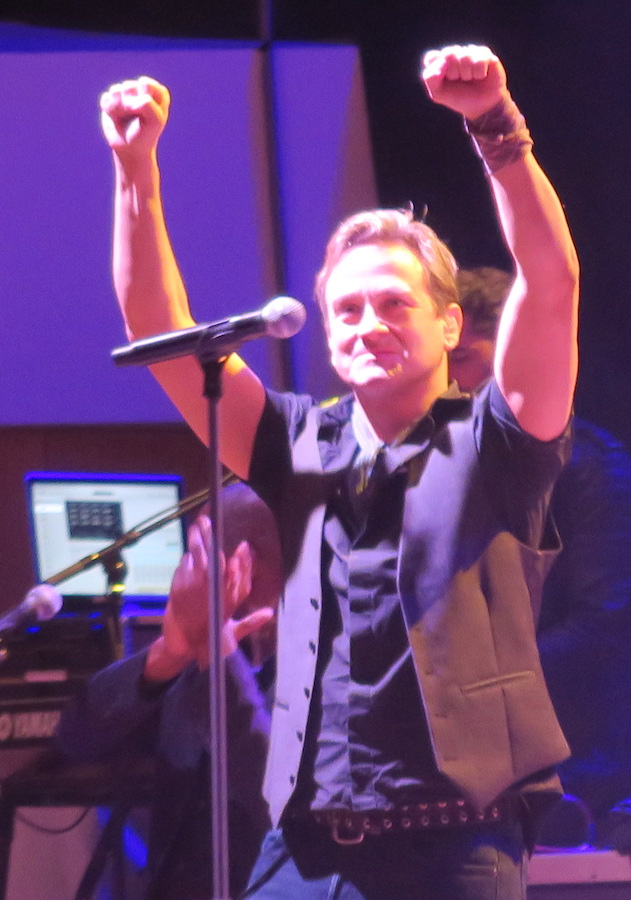 Nicht ganz schuldlos an dieser stehenden Euphorie war Sänger TIM HOWAR, der das Publikum permanent zum Mitmachen, Mitsingen, Mitklatschen aufforderte. Das hatte das Aufstehen zur Folge – und es wäre nicht schlecht, wenn trotzdem einfach mal ein „Sit down, please!“ von der Bühne erschallt wäre. MIKE RUTHERFORD, der das gesamte Konzert lang sehr ruhig und sympathisch agiert, nannte bei der frühen Vorstellung seiner Band Howar auch „the actor“ (Den Schauspieler, der er wirklich auch mal war!), der leider zugleich alles dafür tat, um etwa ab der Hälfte des Konzerts in Dresden das zurecht begeisterte Publikum nicht zu Standing Ovations, sondern zu einem Dauerstehplatz zu animieren.
