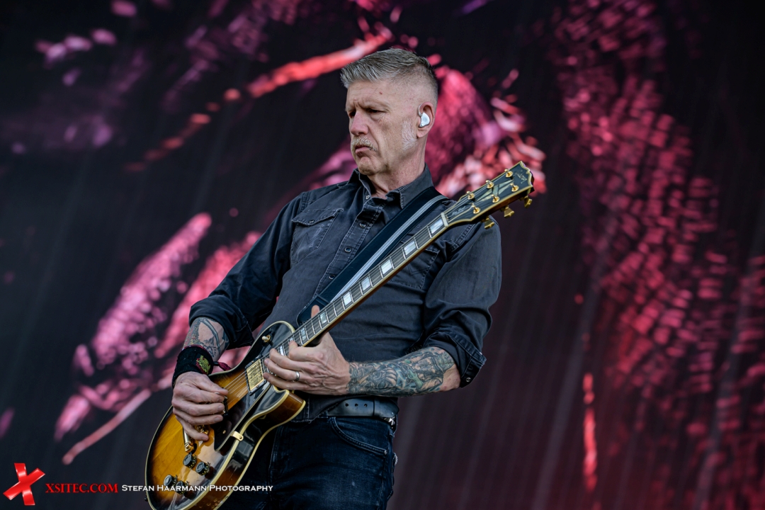 Frankreichs tonnenschwerer Export: präzise wie ein Uhrwerk, wuchtig wie eine Springflut. Die HARDER bekommt tektonische Riffs, hypersaubere Doublebass-Parts und ökologische Untertöne. Die Texte weisen teilweise spirituelle Einsichten aus, die im Infield, nicht zuletzt aufgrund des wieder einmal herunterprasselnden Regens, nicht wirklich wahrgenommen werden. Die französischen Metal-Meister liefern eine Darbietung, die sowohl technisch atemberaubend als auch spirituell gewaltig ist. Als der Himmel sich verdunkelt, macht das hypnotische, hämmernde Intro von „Born For One Thing" einem Set Platz, das sich wie ein urtümliches Ritual anfühlt. Die Visuals von Entwaldung und Ozeanverschmutzung während „The Chant" und „Amazonia" sind eindringlich und verwandeln das Konzert in eine machtvolle, gemeinsame Aussage. Das synchronisierte Headbangen während „Stranded" ist ein Bild für die Götter, in dem die hier versammelte Metal-Armee im Schlamm zur Einheit wird. Großartig.